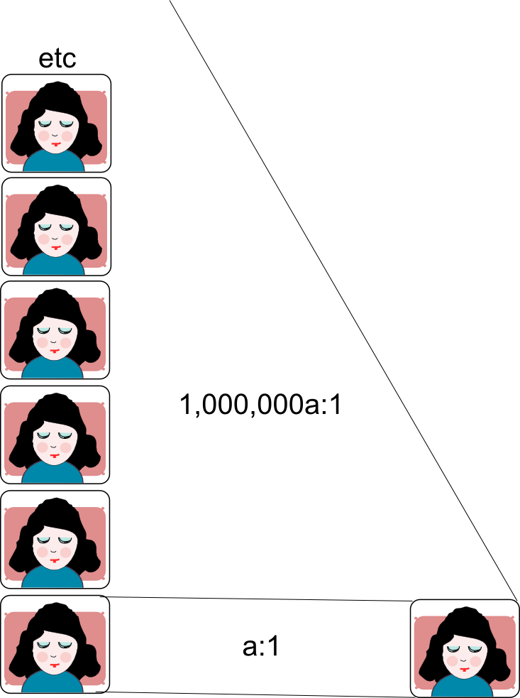 Extreme Sleeping Beauty wakes up a million times on tails or once on heads. There is no choice of ‘a’ which doesn’t lead to extreme certainty either before or after knowing it is the first waking.