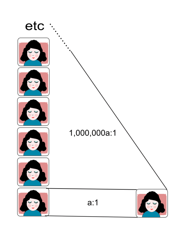 Extreme Sleeping Beauty wakes up a million times on tails or once on heads. There is no choice of ‘a’ which doesn’t lead to extreme certainty either before or after knowing it is the first waking.