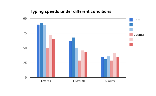 Incidentally I suspect Qwerty gets a boost in journaling relative to typing tests. This is because I have to look at my hands a fair bit to do it, which is harder when you also have to look at the screen sometimes too.